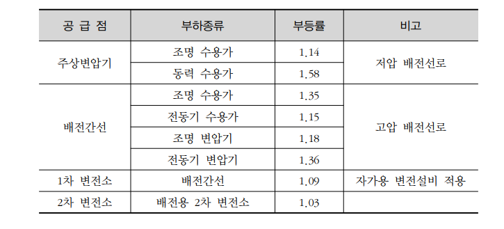 2. 조명 및 전동기 등의 사용설비 용량은 전기공급약관에서 정하고 있는 해당 입력환산률을 이용해 부하용량 산정이 가능하다.