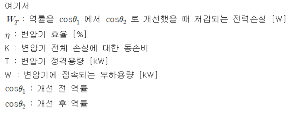 진산콘덴서 사용시 변압기의 손실 저감량 산식
